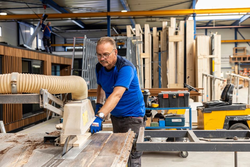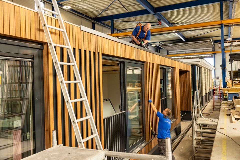 Het familiebedrijf bouwt jaarlijks tussen de 30 en 40 woonarken. Volledig met de hand. In een grote overdekte bedrijfshal worden de waterwoningen in geconditioneerde ruimtes geheel binnen afgebouwd. Het pand ligt aan het kanaal en via de Urkersluis varen de afgebouwde woonarken via het IJsselmeer naar hun nieuwe eigenaar. Leuk detail: de woonark wordt dan 5,5 meter omhoog gepompt. In Flevoland wonen en werken we nu eenmaal op de voormalige zeebodem en dat merk je in de sluis pas goed.