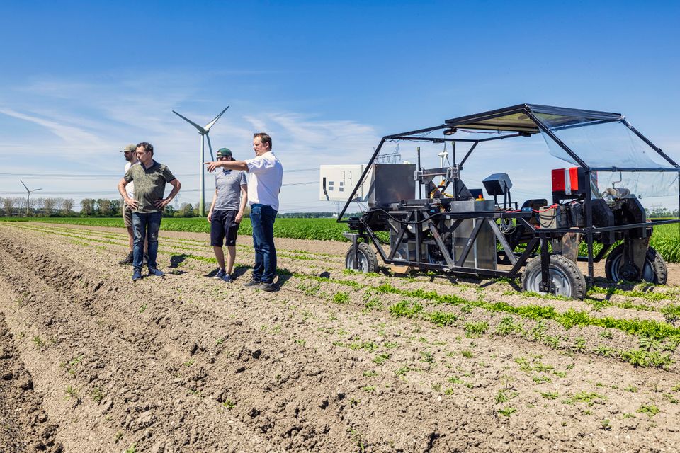 Flevoland is daar bij uitstek geschikt voor, vertelt Martijn. ‘We hebben op onze proefvelden op de Boerderij van de Toekomst niet alleen alle ruimte, ook onze klanten zitten in deze regio. Zij kunnen niet wachten totdat de robot op de markt is. Het wordt steeds moeilijker om personeel te vinden dat het onkruid wil verwijderen. Ik vind het fijn dat de boeren met ons meedenken, kritisch zijn en vooral de Flevolandse mentaliteit spreekt me erg aan. Mensen zijn hier heel erg “down to earth”’.