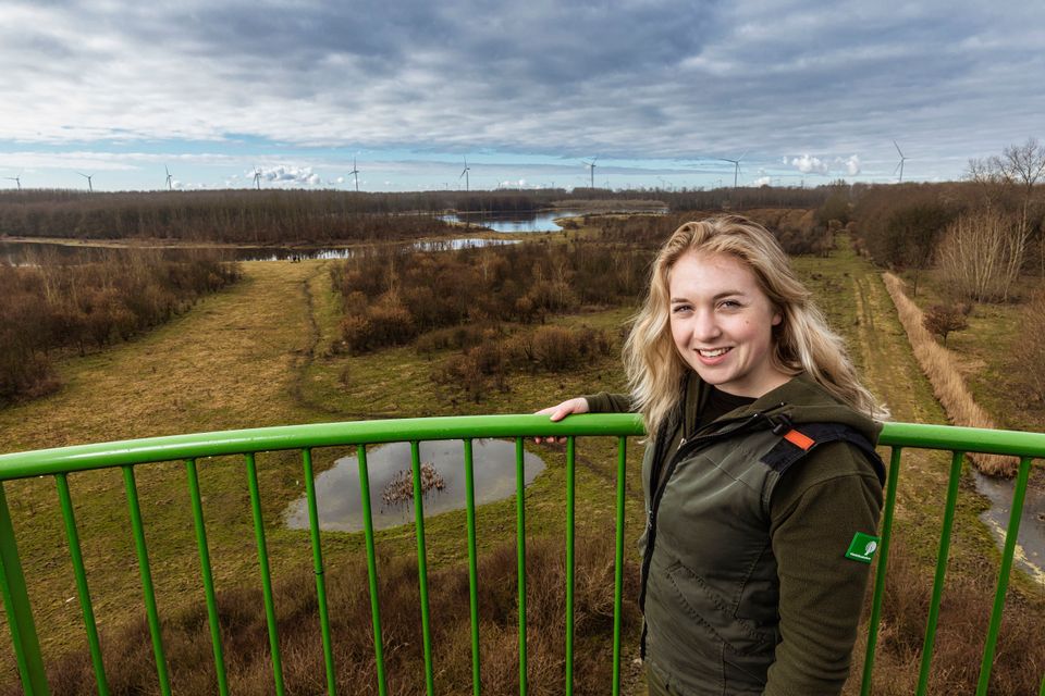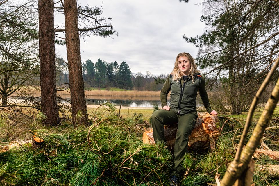 Dat en meer legt de jonge, bevlogen boswachter publiek uit Almere uit aan de tv-presentator. ‘Ik vind het supertof dat ik dat namens alle boswachters in Flevoland mag doen.’ Ze kan dan ook meteen even het beeld (rechttoe rechtaan en vol populieren) van Flevoland rechtzetten.