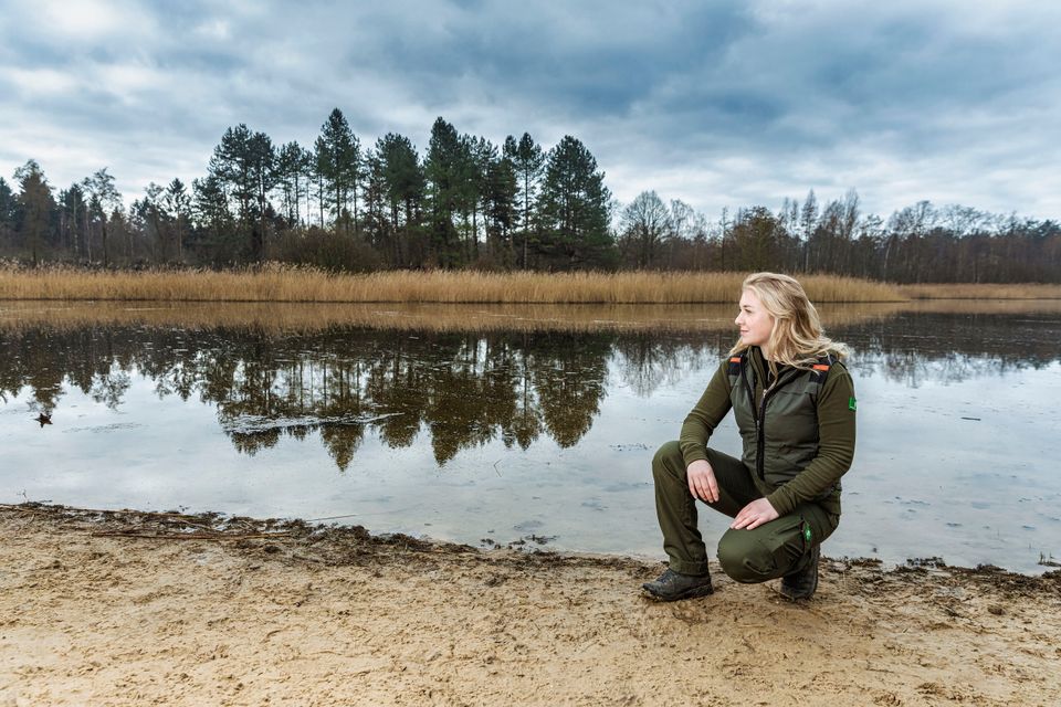 Dat en meer legt de jonge, bevlogen boswachter publiek uit Almere uit aan de tv-presentator. ‘Ik vind het supertof dat ik dat namens alle boswachters in Flevoland mag doen.’ Ze kan dan ook meteen even het beeld (rechttoe rechtaan en vol populieren) van Flevoland rechtzetten.