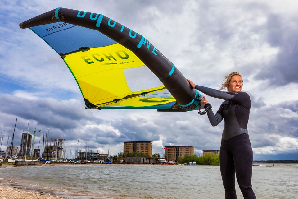 ‘Ik heb altijd veel verschillende sporten kunnen doen. Op school en van huis uit. Er is veel mogelijk op sportgebied in Almere. En vaak op hoog niveau. Als je in Almere-Haven woont, op 10 minuten afstand van het strand en de club, dan is dat natuurlijk ideaal. Maar ik heb ook op hoog niveau gevoetbald. Uiteindelijk is het voor mij windsurfen geworden.’’